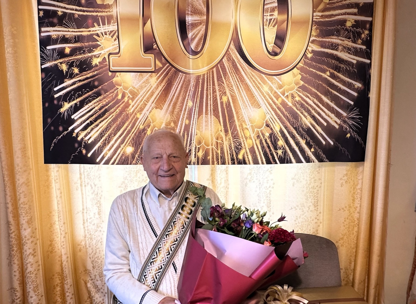 Su solidžiu 100 metų jubiliejumi jį sveikino sūnūs, dukra, 6 anūkai ir 8 proanūkiai, giminės, draugai, kaimynai.