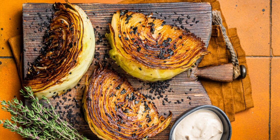 Grilintas kopūstas su jogurto ir mėtų padažu