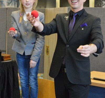 Gerą pusvalandį truko šurmulys, įnirtingos diskusijos, užduočių pildymas. O kai visi atsakymai buvo sužymėti, ir komisija pradėjo tikrinti darbus, bibliotekoje prasidėjo … tikrų tikriausi stebuklai! Triukus ir gerą nuotaiką susirinkusiems dovanojo į svečius atvykęs bene garsiausias Lietuvoje iliuzionistas Mantas Wizard.