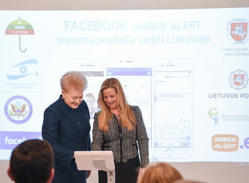 Lietuvos Respublikos Prezidentė Dalia Grybauskaitė kartu su pasaulinio socialinio tinklo „Facebook“ Saugumo ir patikros departamento vadove Emily Vacher aktyvavo dingusių vaikų paieškai skirtą sistemą „Amber Alert“.
