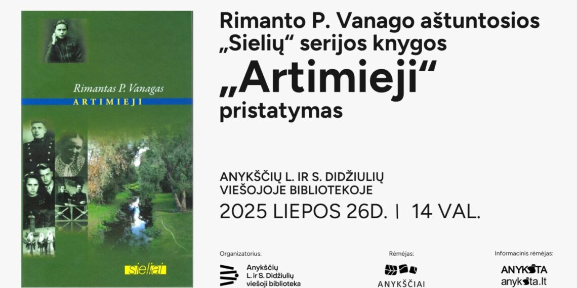 Anykščių miesto šventės metu maloniai kviečiame Jus į rašytojo, Anykščių gyvojo klasiko Rimanto Povilo Vanago naujausios knygos „Artimieji“ pristatymą – tai jau aštuntoji dokumentinės serijos „Sieliai“ dalis.