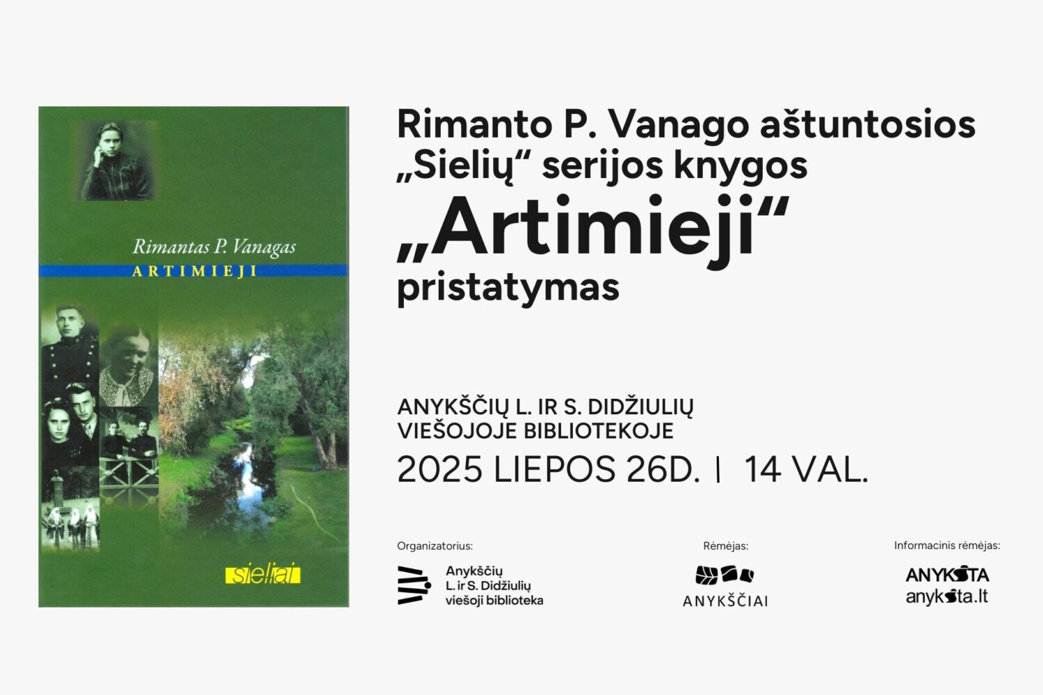 Susitikime liepos 26 d. 14 val. Anykščių rajono savivaldybės Liudvikos ir Stanislovo Didžiulių viešojoje bibliotekoje.
