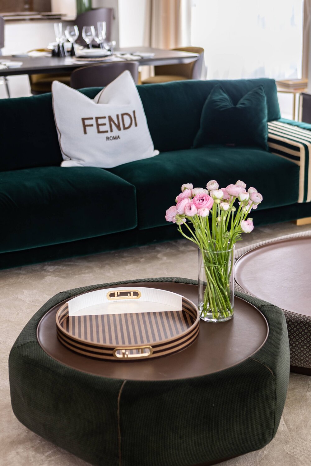 „Kiekvieni apartamentai šiame komplekse yra kruopščiai suprojektuoti pagal „Fendi Casa“ standartus. Natūralios medžiagos, tokios kaip marmuras ir prabangus medis, sukuria harmoningą aplinką, kuri alsuoja elegancija. Didžiuliai panoraminiai langai atveria kvapą gniaužiančius vaizdus į jūrą ir kalnus, o apartamentų išplanavimas užtikrina maksimalų šviesos patekimą į vidų. „Fendi Casa“ prisilietimą galima pajusti kiekvienoje detalėje – nuo šiuolaikiškų, pagal užsakymą pagamintų virtuvių su „Gaggenau“ įranga, iki rankų darbo sienų apdailos ir prabangių vonios kambarių, kuriuose dominuoja „Villeroy & Boch“ ir „Dornbracht“ įranga“, – sako nekilnojamojo turto ekspertė.