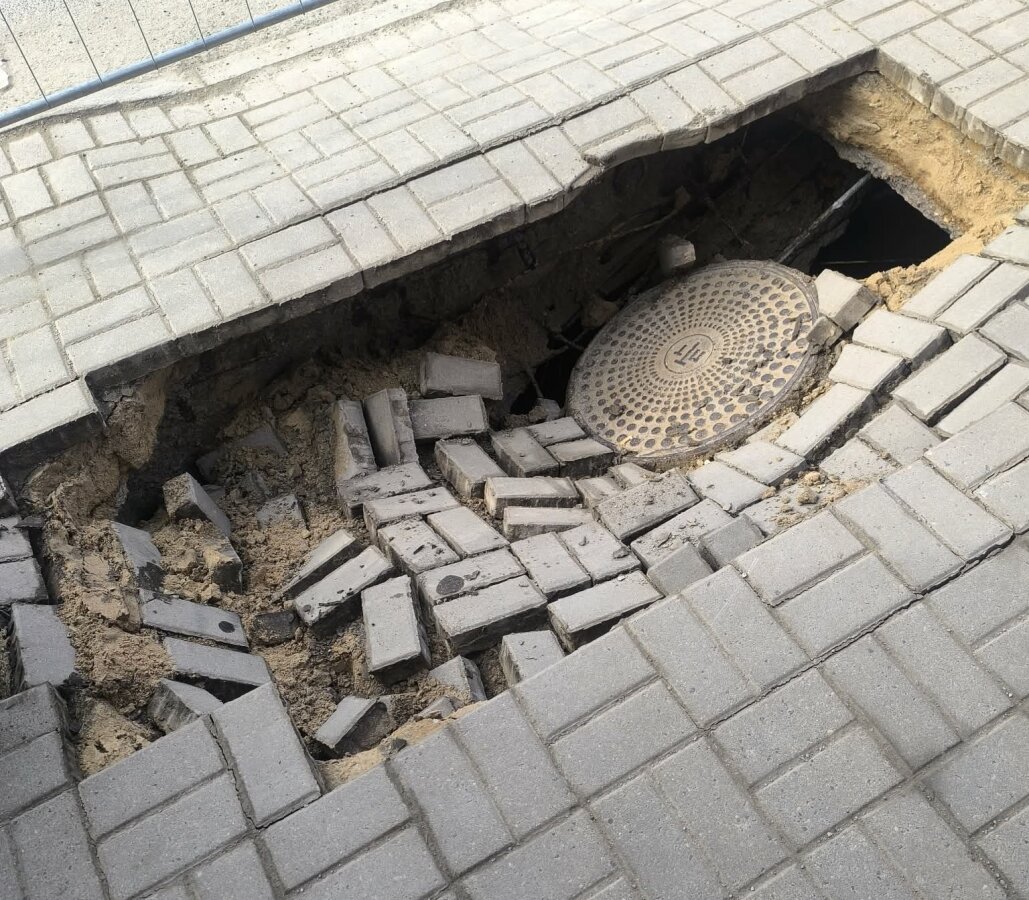 Ties Biržų miesto Vytauto g. 23 numeriu pažymėtu pastatu (Biržų miesto senojo pašto pastatu), kurio tvarkybos darbai šiuo metu vykdomi, įgriuvo telekomunikacijų šulinio perdanga.