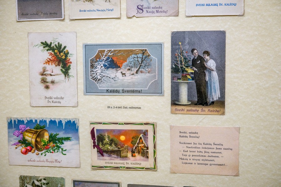 Senaisiais kalėdiniais žaisliukais išpuoštose dvaro erdvėse lankytojams pristatomi 662 lietuvių dailininkų, fotografų kurti ir kiti Lietuvoje bei užsienyje XX a. pr. – 9 deš. spausdinti lietuviški kalėdiniai ir naujametiniai atvirukai, vokai. Sveikinimo tradicijų raidą Lietuvoje iliustruoja praėjusio amžiaus 1–9 dešimtmečių atvirukai, vokai iš Daugyvenės kultūros istorijos muziejaus-draustinio direktorės dr. Lauros Prascevičiūtės kolekcijos ir dalis 2–4 dešimtmečio – iš muziejaus įkūrėjo Egidijaus Prascevičiaus kolekcijos. Atvirukai parodoje eksponuojami chronologine tvarka, todėl galima matyti, kokie šventiniai simboliai buvo aktualūs ar populiarūs viename ar kitame praėjusio amžiaus dešimtmetyje.