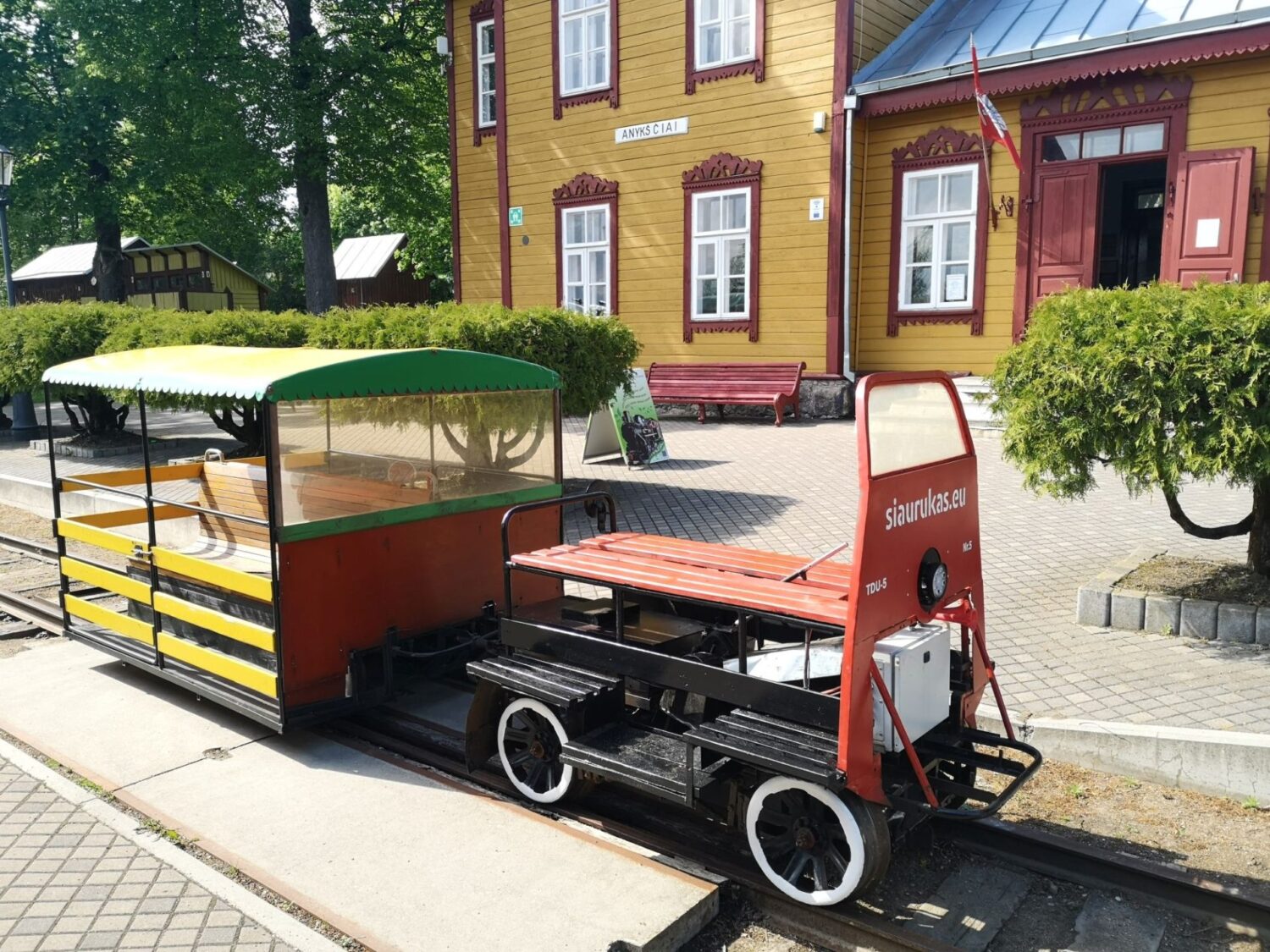 Taip pat Anykščiuose yra galimybė visiems norintiems pasivažinėti siaurojo geležinkelio bėgiais elektrine drezina.
