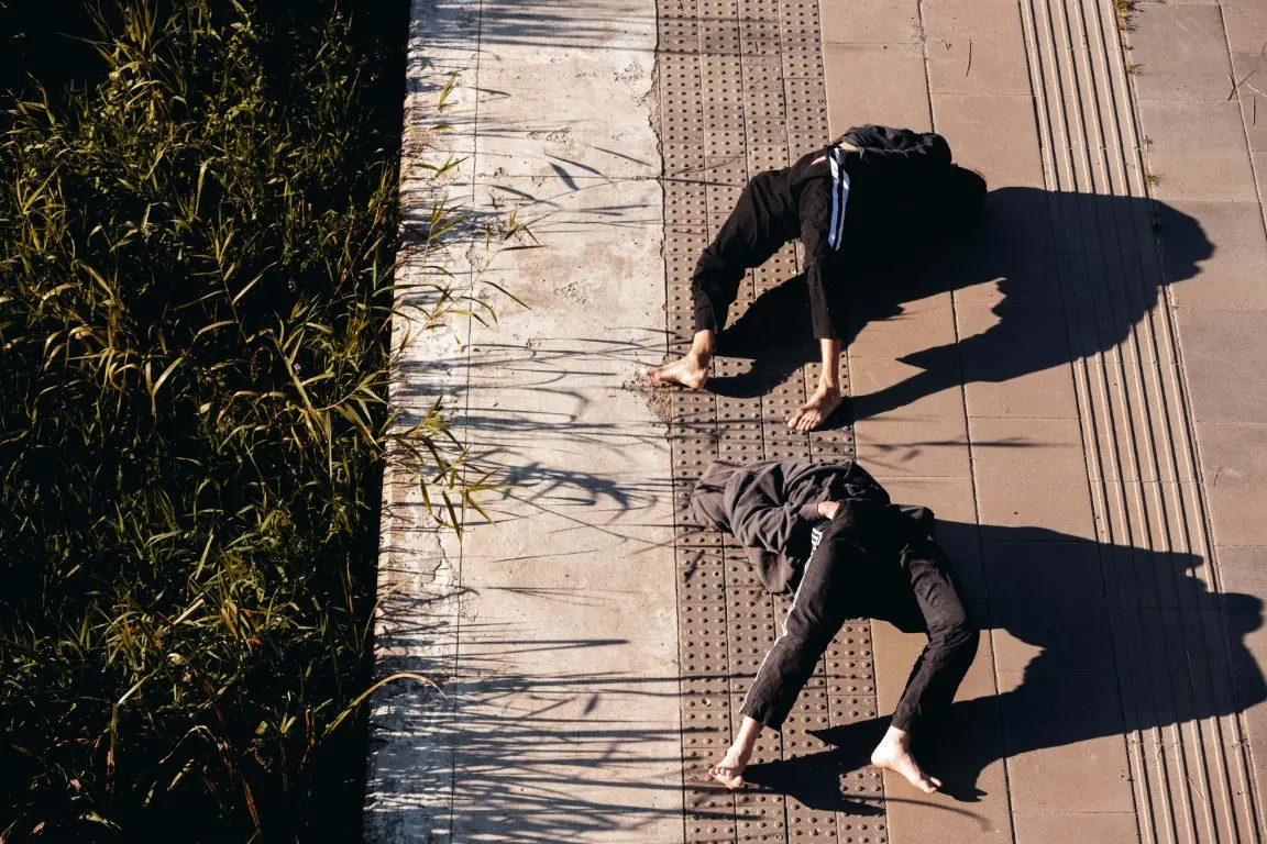 Į festivalio programą atrinktame spektaklyje L. Karvelis ir šokėjas Benoit Couchot apsikabinę arčiau nei bučinio atstumu stengiasi išlaikyti pusiausvyrą ant vienos riedlentės. Jie sukasi nesibaigiančiame judesyje, patirdami tiek tarpusavio susiliejimą, tiek atskirtį. Šokėjai bando rasti savo individualią ašį, kai yra tiesiogiai priklausomi vienas nuo kito judesių.