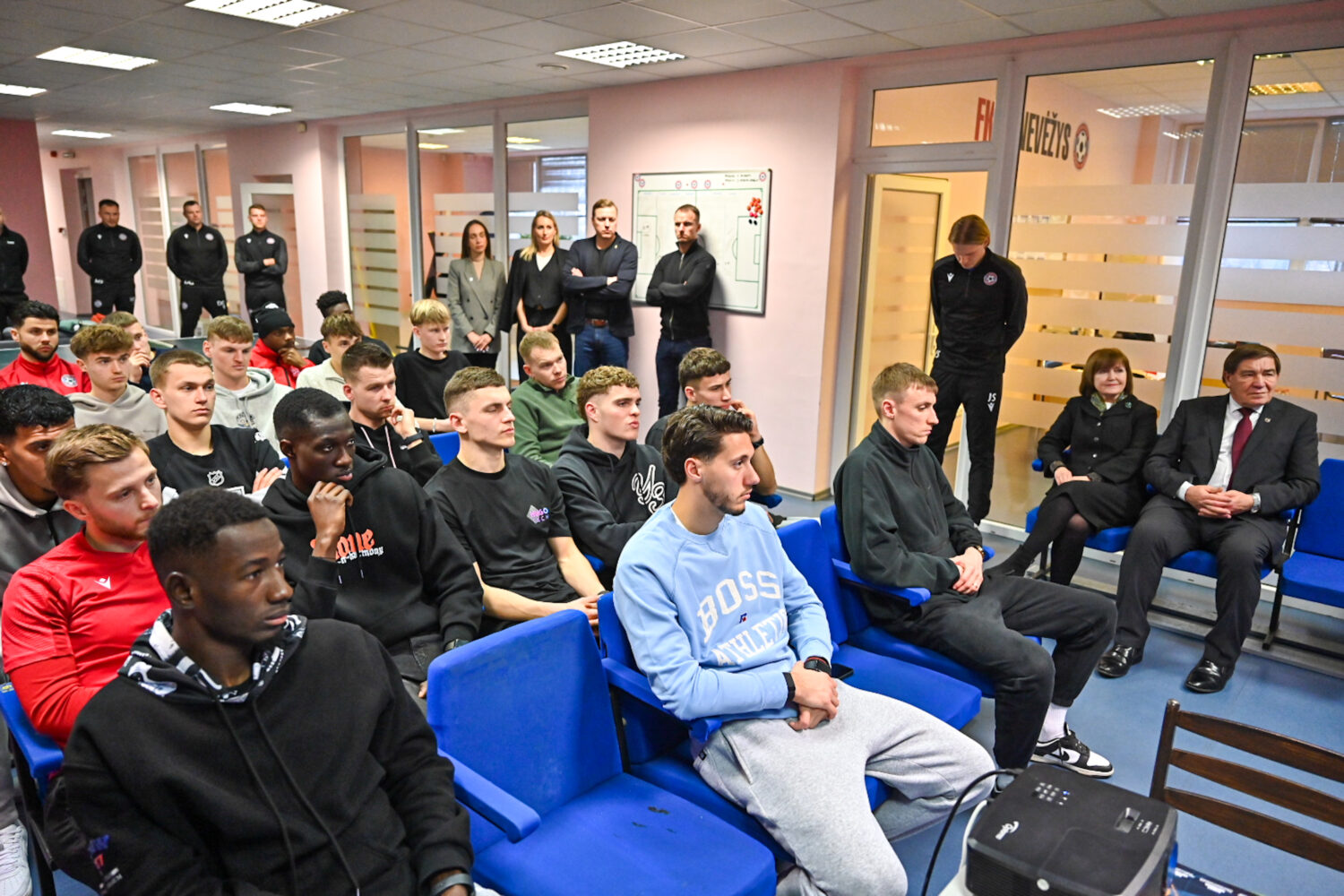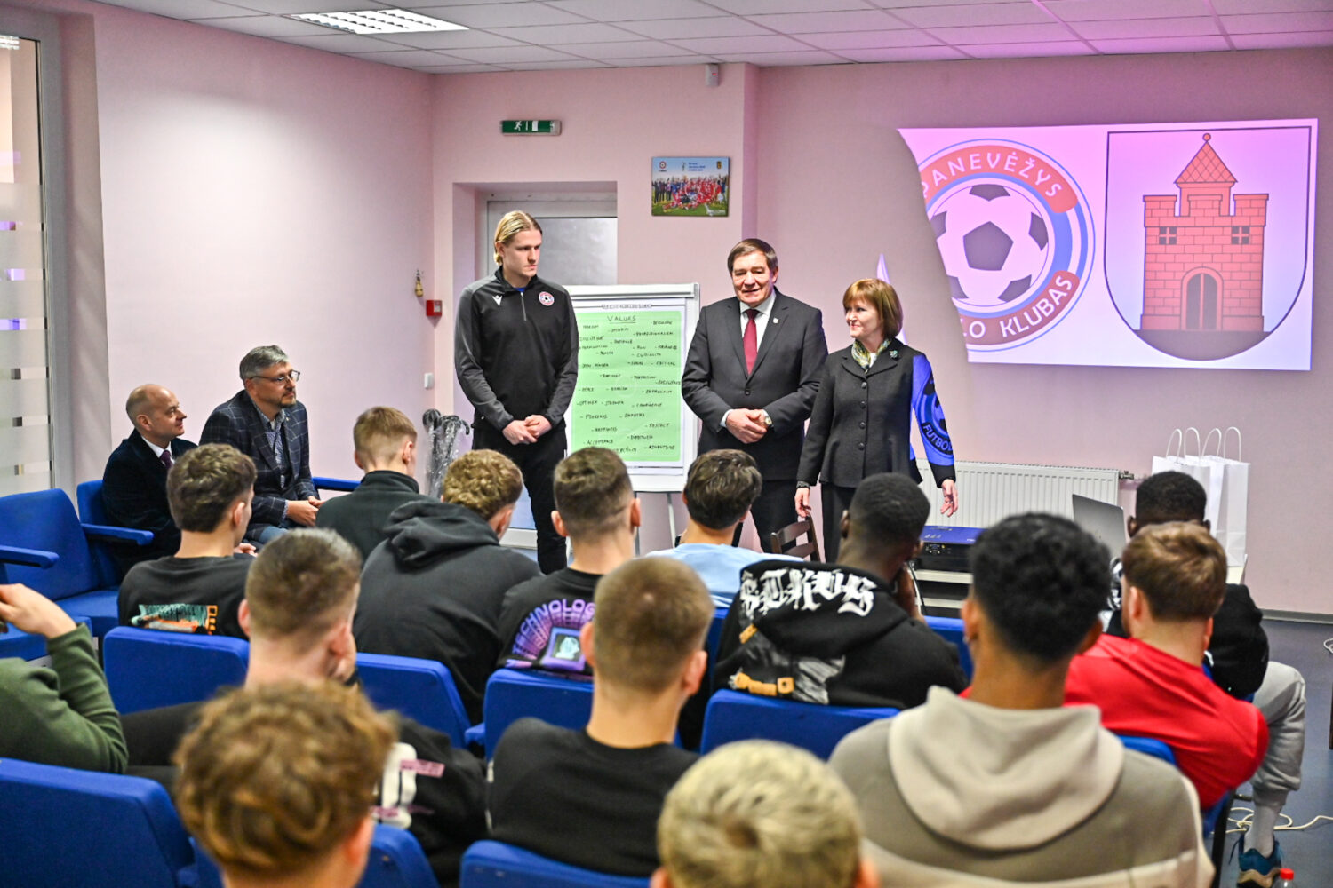 „Futbolas – tai aistra, ištvermė ir tikslo siekimas iki paskutinio teisėjo švilpuko. FK „Panevėžys“ atstovauja miestui ne tik aikštėje, bet ir už jos ribų – jūsų ryžtas, komandinis darbas ir siekis laimėti įkvepia visą bendruomenę. Linkiu ne tik pergalių, bet ir tikėjimo savo jėgomis kiekviename žingsnyje. Kovokite drąsiai – Panevėžys su jumis!“ – sakė Panevėžio miesto mero pareigas laikinai einantis tarybos narys Petras Luomanas.