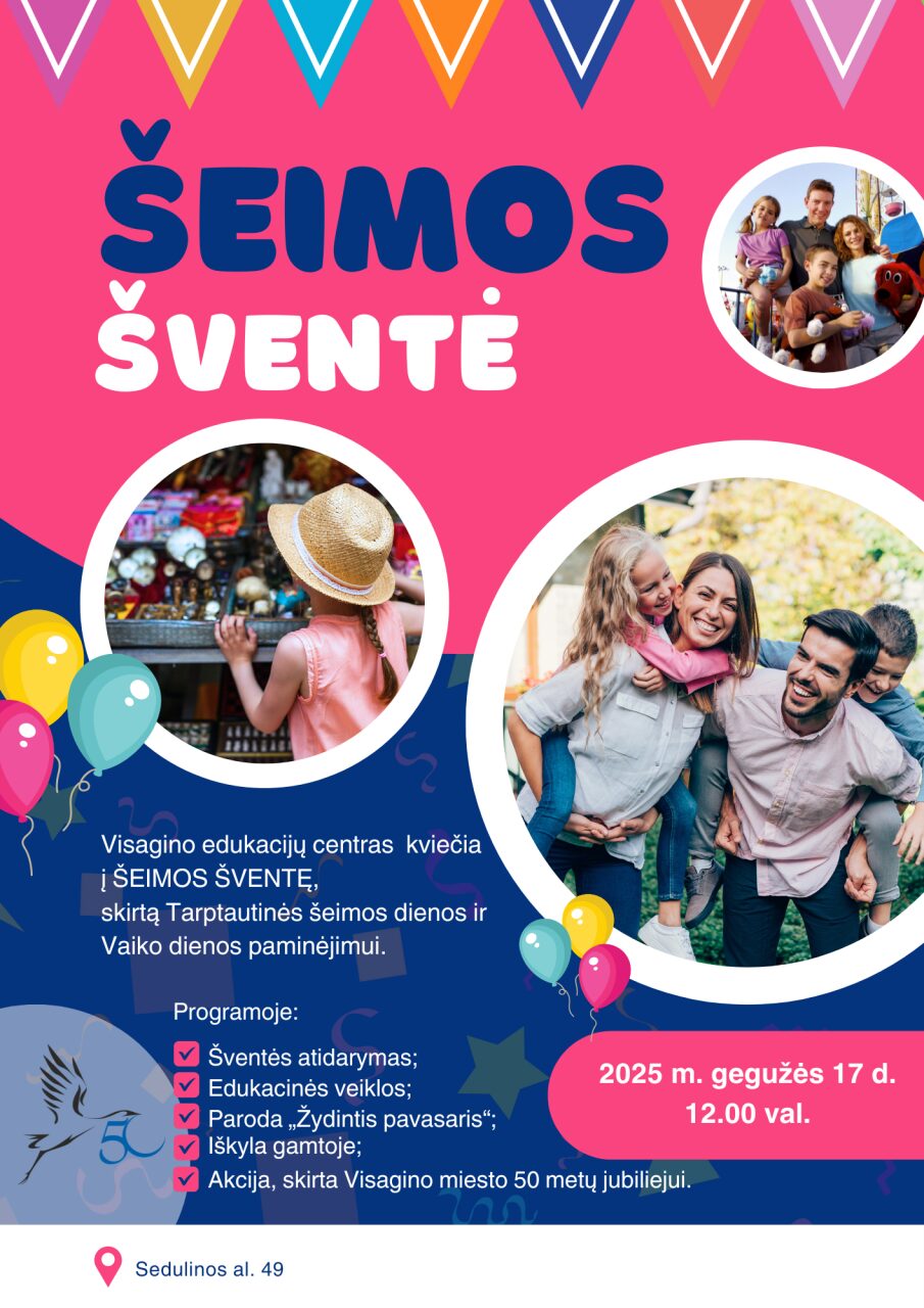 Visagino edukacijų centras kviečia į ŠEIMOS ŠVENTĘ, skirtą Tarptautinei šeimos dienos ir Vaiko dienos paminėjimui.