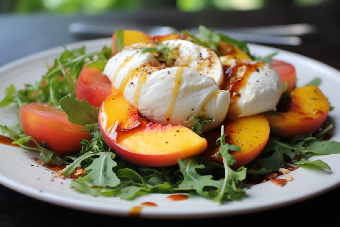 Šventė ir gomuriui, ir akims: pomidorų, persikų ir buratos arba mocarelos salotos