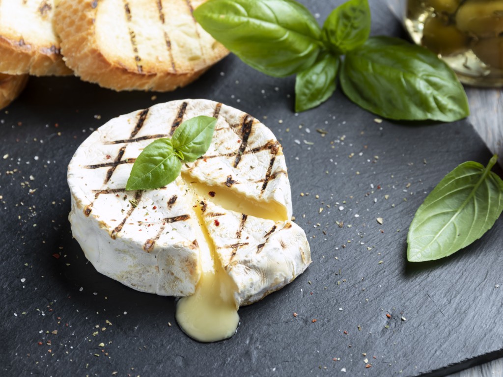 Grilyje keptas bri sūris su šviežiomis uogomis