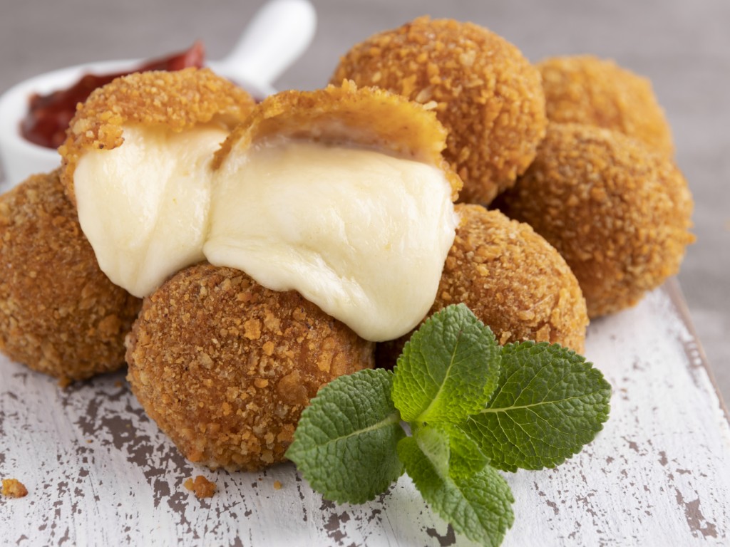 3. Padėkite mocarelos rutuliukus ant popierinio rankšluosčio, kad nusausintumėte aliejų, ir patiekite su mėgstamu padažu – pavyzdžiui, kečupu, česnakiniu ar ta pačia plakta feta.