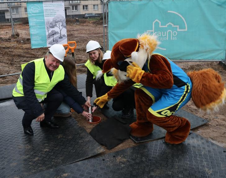 Vakar Kauno rajono savivaldybės meras Valerijus Makūnas, Karmėlavos seniūno pavaduotoja Agnė Mozerienė ir rangovų atstovė Irma Rybakovienė įkasė laiko kapsulę, kuri simbolizuoja darbų pradžią.