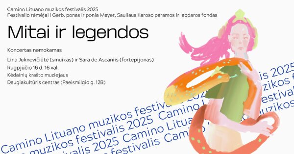 Camino Lituano muzikos festivalis kviečia Kėdainių miesto bendruomenę, apylinkių gyventojus, svečius ir piligrimus į rugpjūčio 16 d. 16 val. vyksiantį festivalio koncertą „Mitai ir legendos” Kėdainių krašto muziejaus Daugiakultūriame centre. Koncerte pasirodys smuikininkė Lina Juknevičiūtė su italų pianiste Sara de Ascaniis.