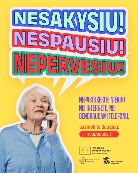 Siekdama didinti valstybės kibernetinį saugumą ir visuomenės atsparumą, Krašto apsaugos ministerija pradeda plačią komunikacijos kampaniją „Nesakysiu! Nespausiu! Neperversiu!”. Jos metu gyventojus įvairiais būdais pasieks informacija, kaip apsisaugoti susidūrus su sukčiais.