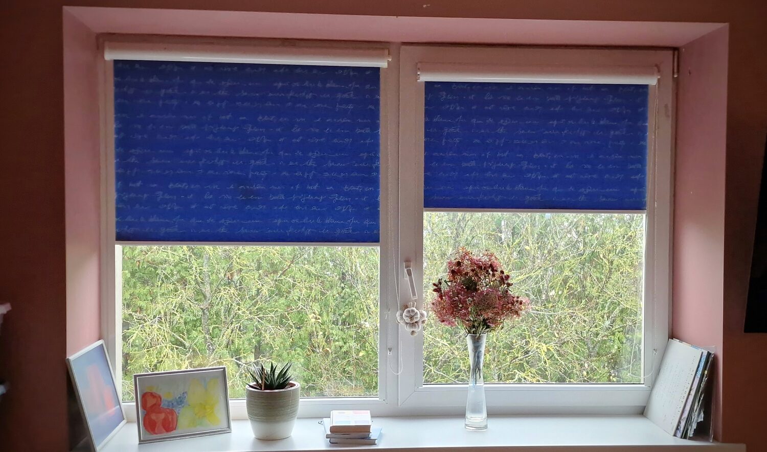 Lyginant su užuolaidomis: roletai užima mažiau vietos, nesunkiai priderinami prie žaliuzių ar užuolaidų, puikiai tinka, kai norisi tvarkos ir švarios lango linijos.