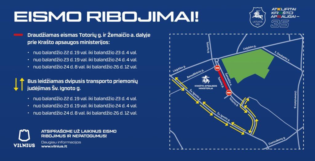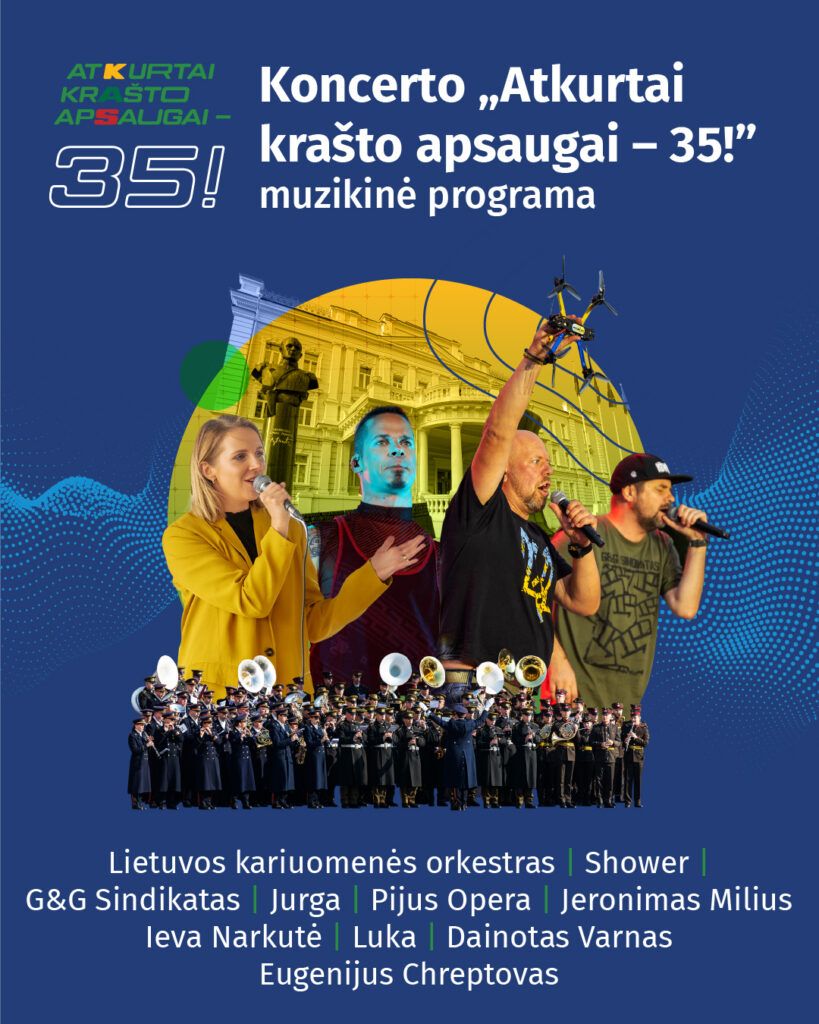 Balandžio 25 d. (penktadienį) 19 val. prie Krašto apsaugos ministerijos (Totorių g. 25) vyks koncertas „Atkurtai krašto apsaugai – 35!”. Renginio ir pasiruošimo jam metu bus laikinų eismo ribojimų.