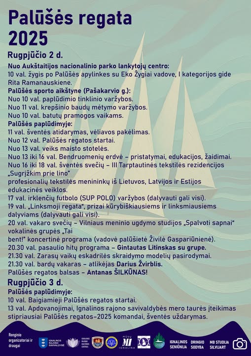 Ir vėl pirmąjį rugpjūčio savaitgalį Palūšė linksminsis, Lūšių ežeras žydės burėmis. Ir vėl džiaugsimės gražiais reginiais, muzika, linkėsim gero vėjo ,,Palūšės regata 2025“ dalyviams.