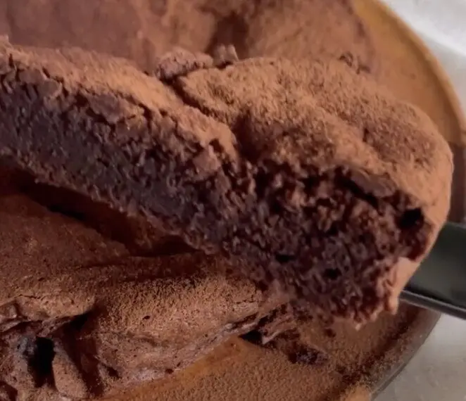 7. Kepame 45 minutes. Atvėsus barstome kakavos pudra. Galima skaninti braškėmis, ledais ar plakta grietinėle.