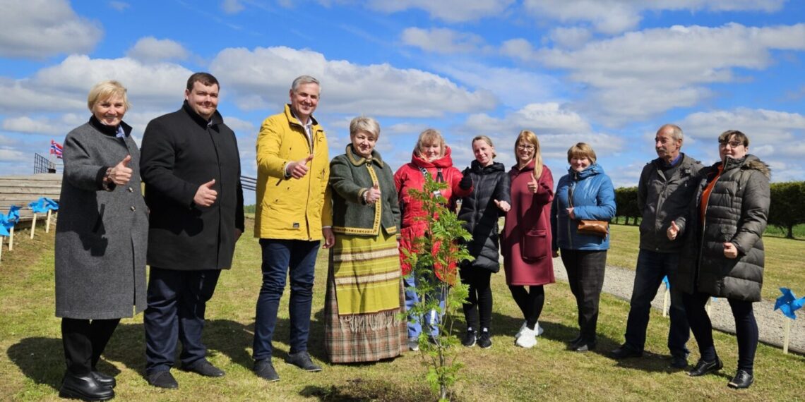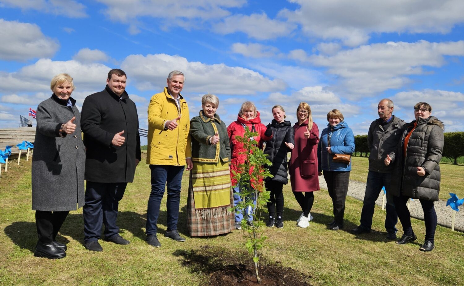 Palinkėję, kad medelis prigytų ir puikiai augtų, renginio dalyviai sustojo bendrai nuotraukai.
