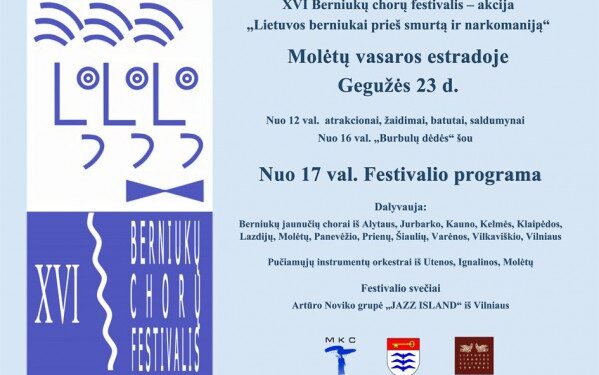 2015 m. gegužės 23 d. XVI berniukų chorų festivalis – akcija „Lietuvos berniukai prieš smurtą ir narkomaniją“ vyks Molėtuose.
