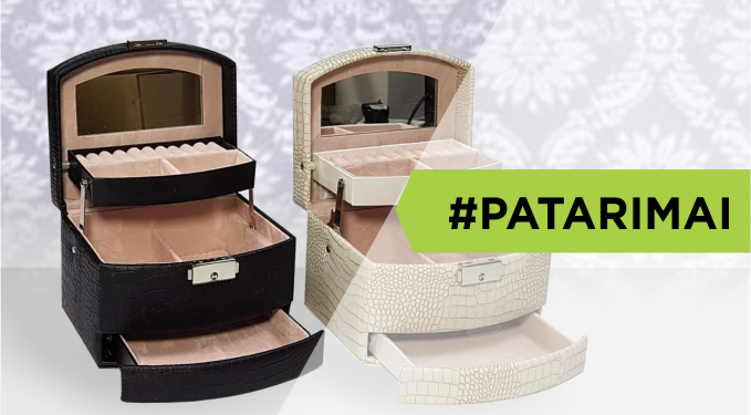Varle.lt specialistai pabrėžia, papuošalų dėžutė turėtų būti funkcionali. Be to, jos dydis turėtų atitikti turimą papuošalų kiekį. Orientuojantis į ateitį rekomenduojama rinktis didesnę papuošalų dėžutę. Taip galėsite būti tikri, kad didėjant papuošalų kiekiui, dėžutė jiems netaps per maža. Taip pat atkreipkite dėmesį į skyrių, kurie leis patogiai organizuoti papuošalų laikymą, skaičių.