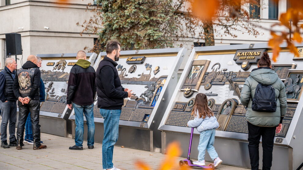 Greta Vytauto Didžiojo karo muziejaus sodelio, Vienybės aikštėje, iškilo naujas meno kūrinys iš bronzos ir plieno. Daugiau kaip 2 tūkst. elementų talpinantys preciziški bareljefai atsispindi reikšmingas Kauno istorijos epochas: miesto ištakas, Napoleono Bonaparto metus ir Laikinosios sostinės laikotarpį. Per trejus metus UAB „Metalo formos“ ir Vyčio paramos fondo iniciatyva gimęs kūrinių triptikas taps nauju istorinės ir kultūrinės atminties akcentu mieste.