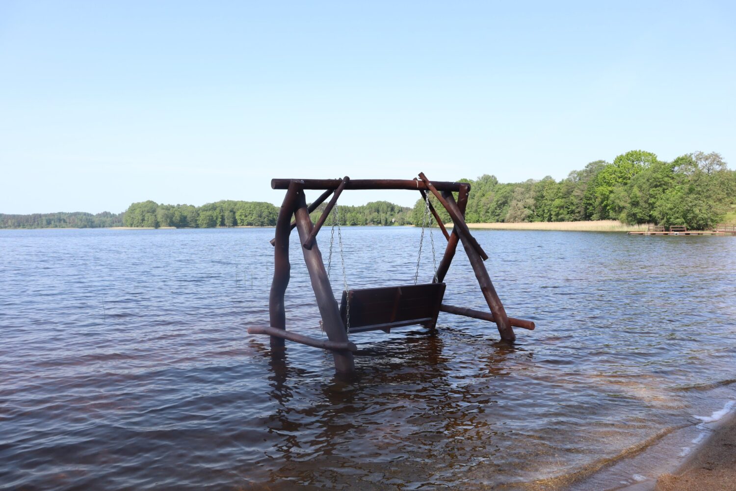 Auksiniame paplūdimyje įrengtos sūpynės… vandenyje! Tai unikali vieta atsipalaiduoti, pasimėgauti šiltu ežero vandeniu, saulės spinduliais ir nuostabiu peizažu. Tobulai tinka tiek tyliai akimirkai su savimi, tiek įspūdingai vasaros nuotraukai.