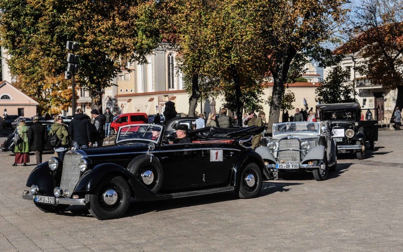 O paganyti akis buvo į ką ir Rotušės aikštėje. Seniausią, 1925 m pagamintą „Packard“ vairavo šeimyninis Gintauto ir Nelės Miškinių ekipažas, ketveriais metais jaunesnį REO – Arvydas ir Donatas Pauliukai, o Lietuvos automobilių klubo klasikinių automobilių padalinio vadovas Šarūnas Žitkevičius su žmona Aušra siūlė atidžiau pažvelgti į jų 1936 m laidos „Mercedes Benz 200“.