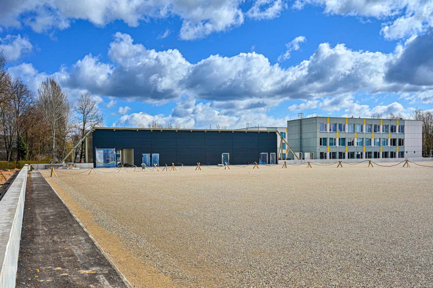 Panevėžio Beržų progimnazijos stadione sparčiai vyksta modernaus sporto infrastruktūros objekto – pripučiamo futbolo maniežo – statybos darbai. Jau baigti vandentiekio, nuotekų, elektros tinklų, vėdinimo ir šildymo sistemų įrengimo darbai, tvarkomas sklypo gerbūvis, prie pabaigos artėja administracinio pastato įrengimas. Artimiausiu metu planuojama pradėti tvoros montavimo darbus.