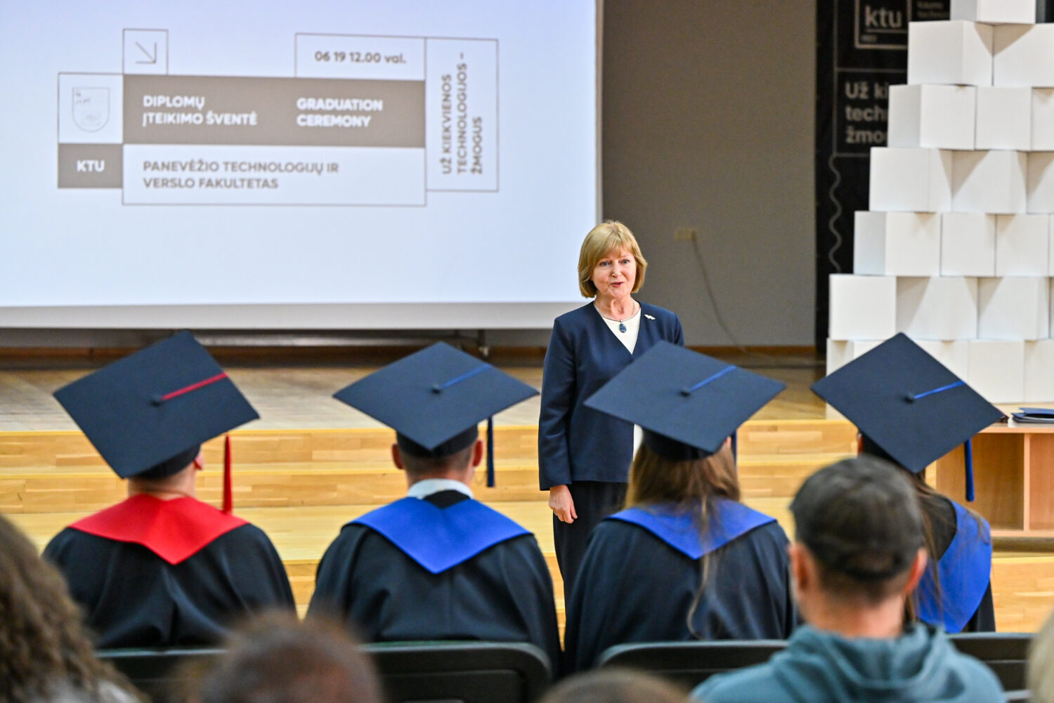 „Didžiuojuosi Panevėžyje veikiančiu fakultetu, kuris kasmet parengia kvalifikuotus specialistus ir prisideda prie miesto augimo. Panevėžys tikslingai vystomas kaip pramonės, inovacijų ir technologijų miestas, todėl labai svarbu, kad čia kurtųsi aukštą pridėtinę vertę kuriančios įmonės ir rastų motyvuotų, pasirengusių specialistų. Kiekvienas diplomas – tai ne tik asmeninis pasiekimas, bet ir investicija į miesto ateitį. Drauge su universitetu stipriname Panevėžį kaip miestą, kuriame norisi likti, dirbti, kurti ir gyventi. Panevėžys. Kaip mes“, – sveikindama absolventus sakė merė Loreta Masiliūnienė.
