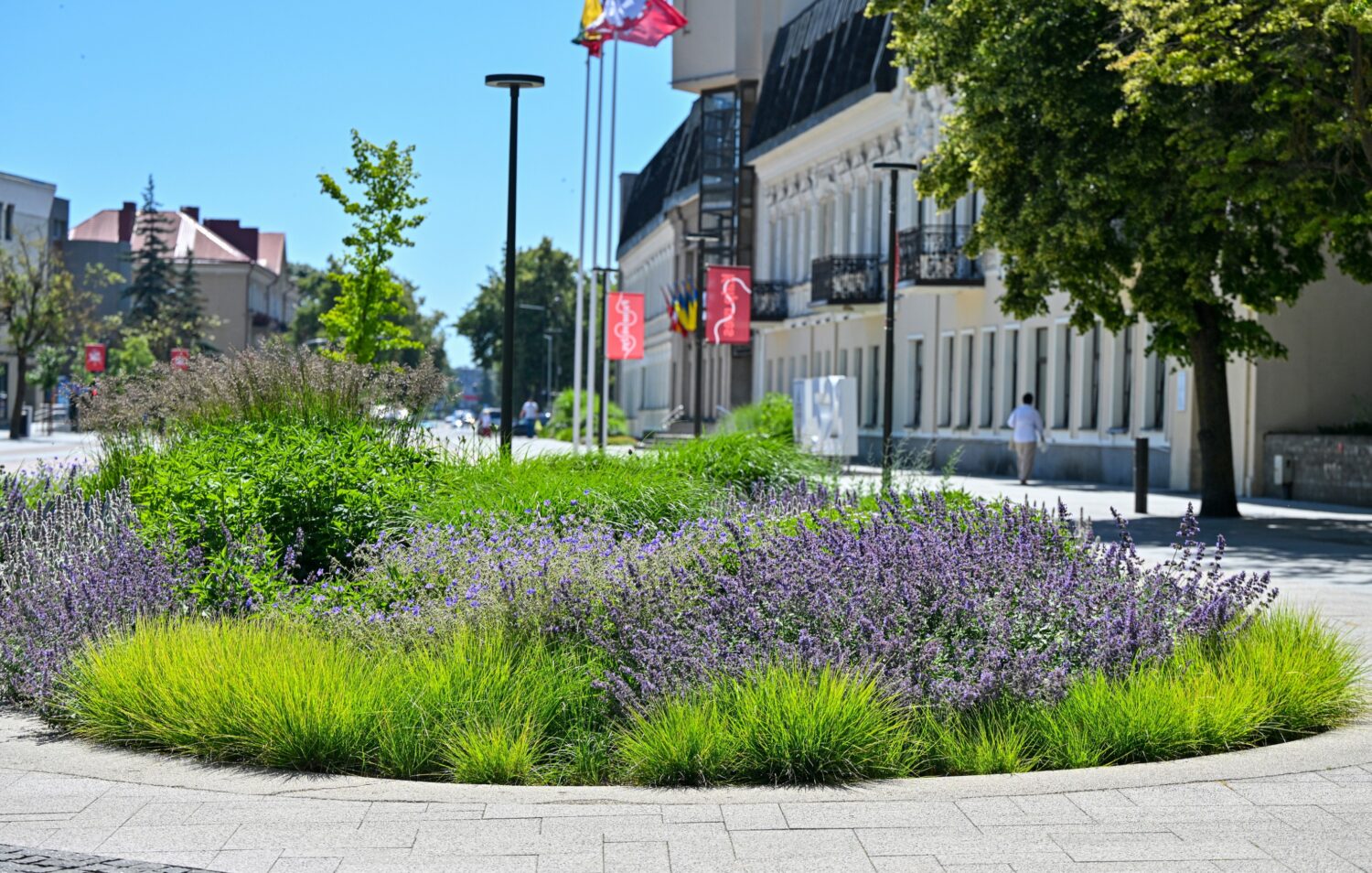 Miesto centras – žydinčių kompozicijų apsuptyje