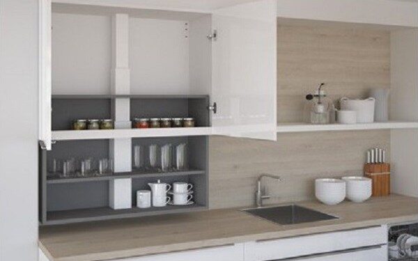 Kitas variantas – pakabinama spintelė ant sienos. Bėda ta, kad iki lubų paprastai dar lieka gana nemažai vietos. Erdvė išnaudota, bet nepakankamai. Dar vienas mažai populiarus baldas, apie kurį turbūt nesate girdėję – spintelė virš skalbimo mašinos. Tai yra į dvi dalis padalinta spinta, kurios apatinė dalis yra atvira, o viršutinė – su lentynėlėmis ir durelėmis.