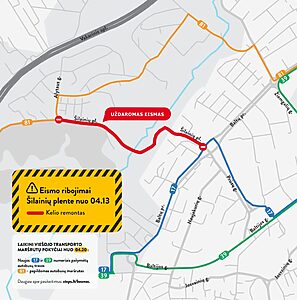 Nuo balandžio 20 d. dėl darbų keisis viešojo transporto maršrutai. 17-ojo bei 39-ojo maršrutų autobusai važiuos iki galinės stotelės „Kauno ligoninė (Šilainiai)“. Papildomai važiuos 81-ojo maršruto Šilainiai–Medekšinės g. autobusai Žemaičių pl., Baltų pr., 9-ojo forto, Mosėdžio, Rainių, Alytaus gatvėmis, Šilainių pl., Medekšinės gatve.