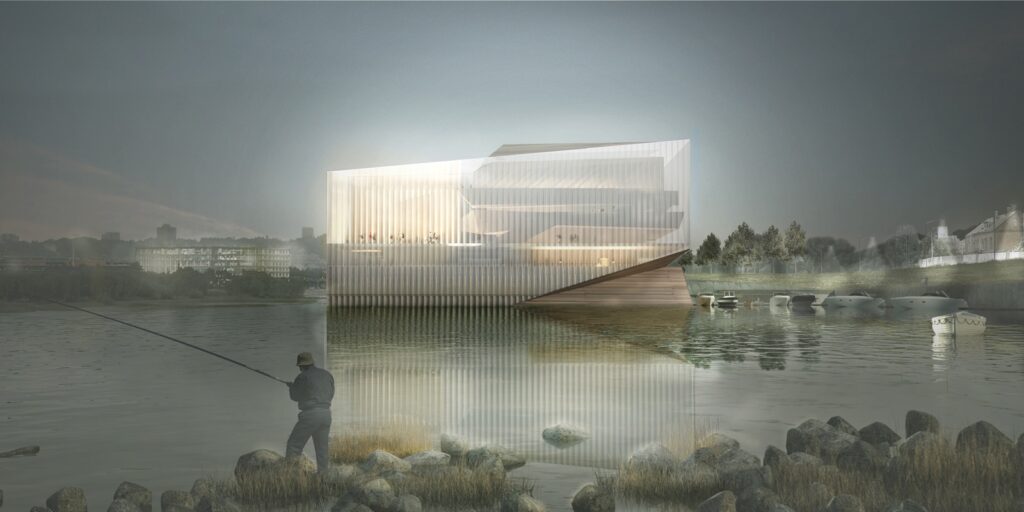 Skaidrus banguotas fasadas atkartoja upės vandens atspindžius. Iš vidaus lankytojams taip pat atsivers gyvas ikoniško Kauno senamiesčio peizažas ir Nemuno tėkmės įrėminta vaizdinga panorama. Numatyta, kad greta pastato įsiterps ir jaukus mažųjų laivų uostas.