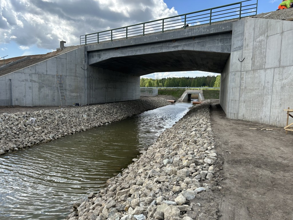 Pagal reikalavimus tokio pločio pralaidai, iš abejų ar bent iš vieno upės kranto turi būti išlaikytas sausas praėjimas, neužliejamas pavasarinių potvynių metu. Dabar, kai statybvietėje mažėja technikos, randami ne tik kiškių ar lapių pėdsakai, bet ir stambesnių žinduolių, tokių kaip stirnų būrių, pėdsakai.