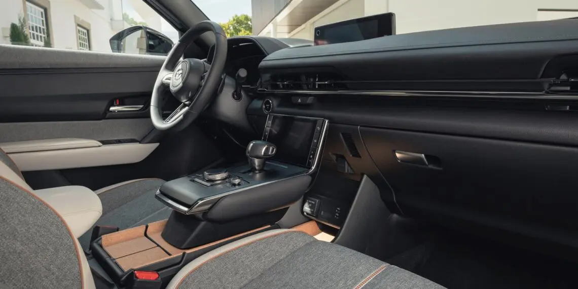 Štai „Mazda“ kamštieną, veganišką odą ir iš PET plastiko perdirbtą pluoštą naudoja tiek visiškai elektriniame MX-30, tiek ir šio modelio unikalioje įkraunamojo hibrido MX-30 R-EV versijoje. Pernai pristatytas automobilis nėra įprastas iš tinklo įkraunamas hibridas, mat jame greta elektros pavaros sumontuotas nedidelis rotorinis vidaus degimo variklis, todėl papildomą elektros energiją kelionėms šis modelis gali pasigaminti naudodamas benziną.