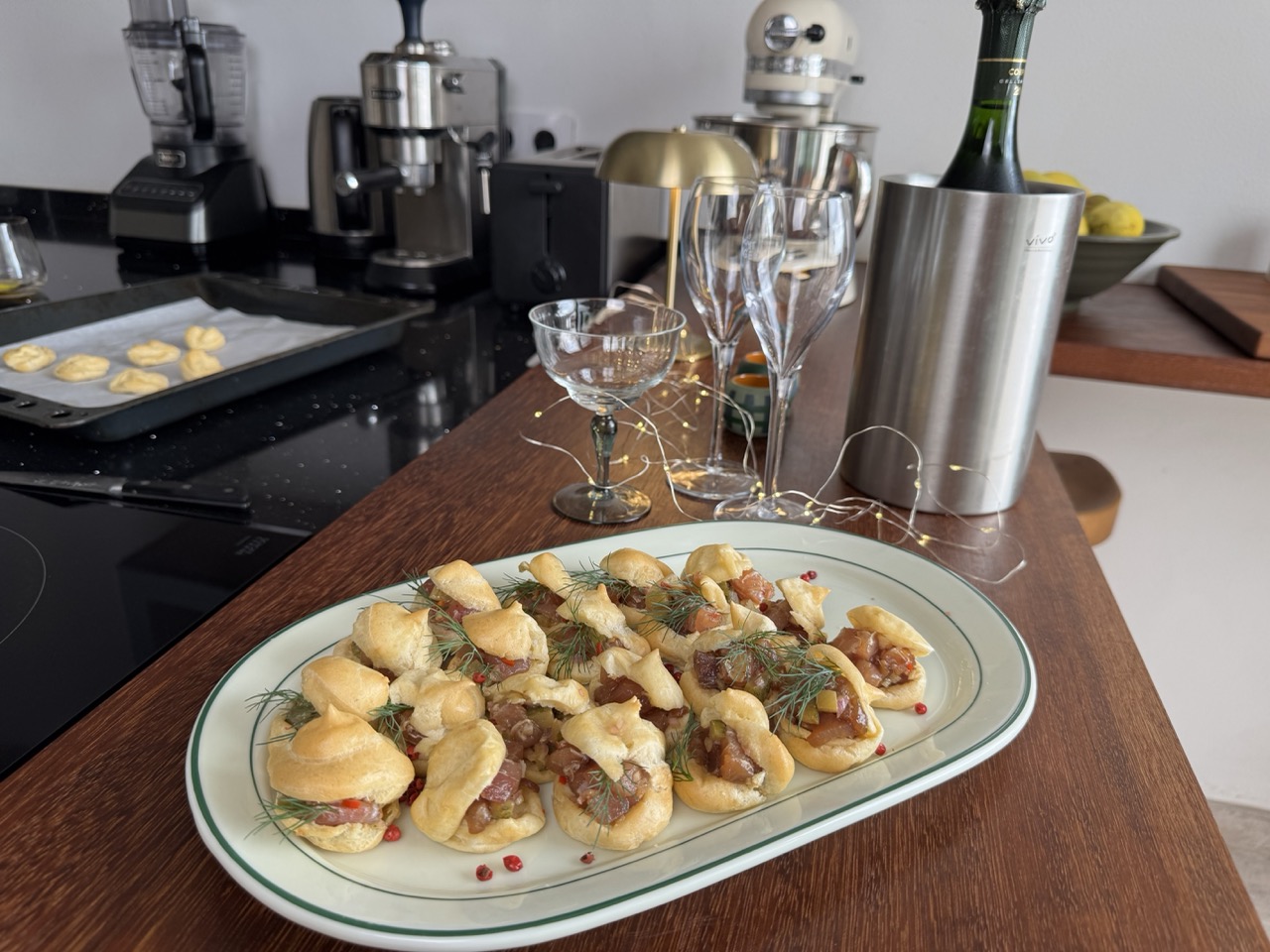 5. Į pyragiukus dedu po šaukštą tartaro ir laukiu svečių – skanaus!