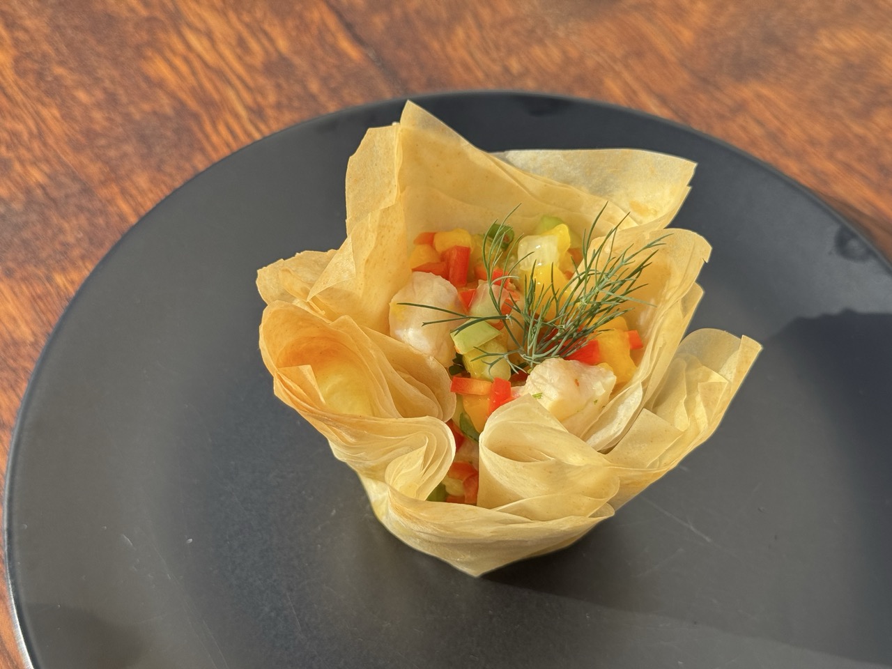 Užkandžių krepšelis su avokadų-krevečių įdaru