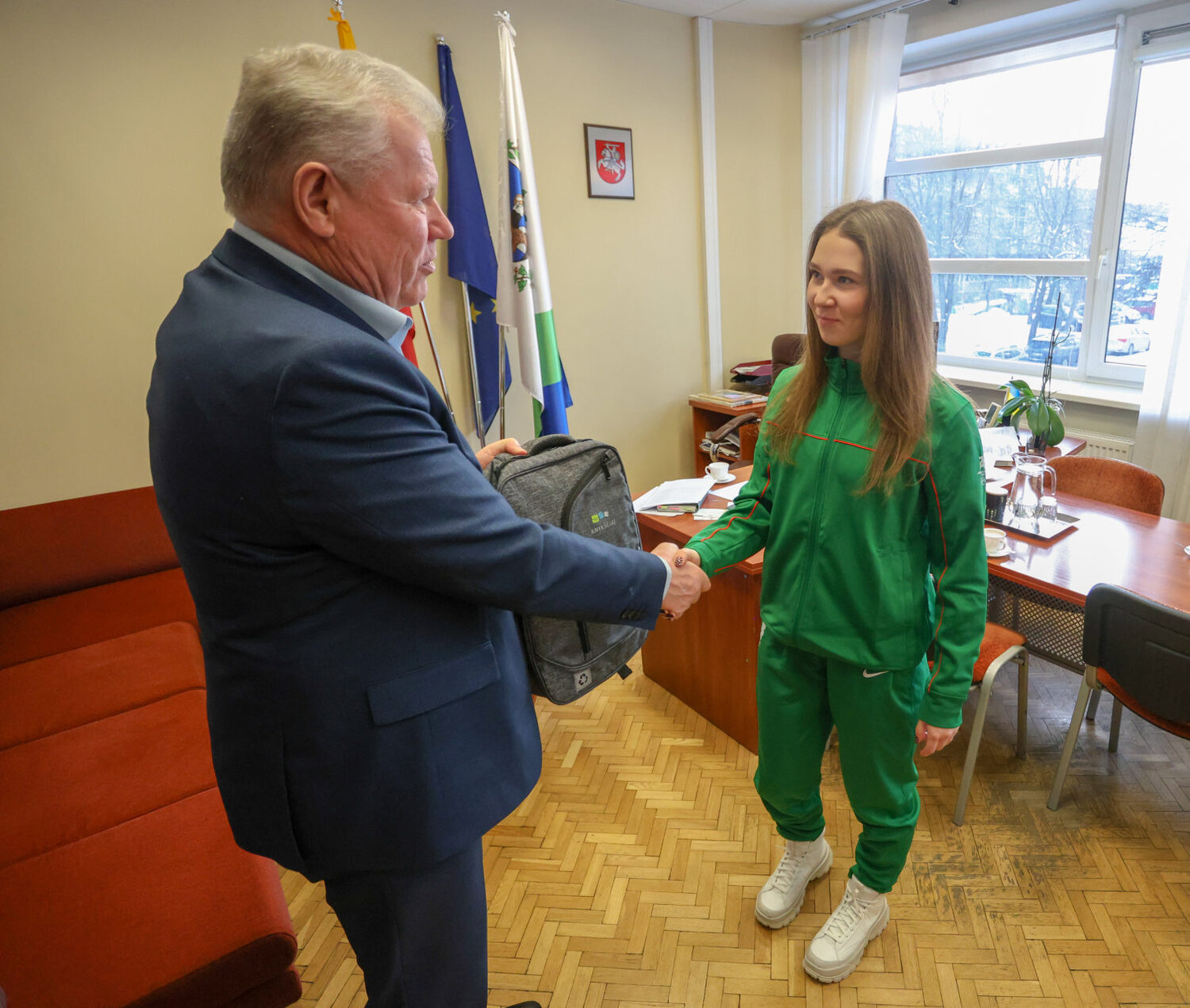 „Tavo užsispyrimas ir sunkus darbas atvedė tave į sporto viršūnę. Linkiu, kad trasoje netrūktų ištvermės, o sekundės būtų tavo pusėje. Visa Anykščių bendruomenė tavimi didžiuojasi ir sirgs už tave kiekviename kilometre“, – susitikimo metu sakė meras Kęstutis Tubis.