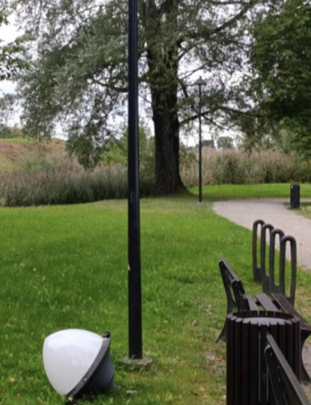 Šį savaitgalį Biržų mieste, pėsčiųjų ir dviračių take palei Širvėnos ežerą (šalia Centrinės miesto maudyklos esančios vaikų žaidimų aikštelės), buvo suniokoti du tako apšvietimo žibintai.