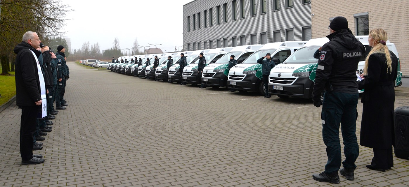 Artėjant šv. Kalėdoms Utenos apskrities vyriausiojo policijos komisariato bendruomenei perduota reikšminga dovana – 15 naujų „Volkswagen Transporter“ tarnybinių automobilių.