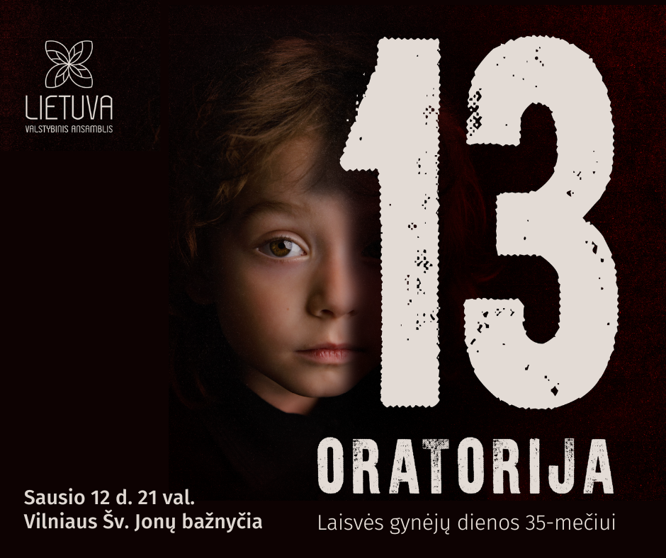 Laisvės gynėjai prieš 35 metus įrodė, kad vienybė ir susitelkimas gali daugiau nei ginklai. Artėjant Sausio 13-osios įvykių metinėms, prisiminti vienybės svarbą kviečia ansamblio „Lietuva“ ir kviestinių atlikėjų projektas – oratorija „13“. Koncertinė programa skambės sausio 12 d. 21 val. Vilniaus Šv. Jonų bažnyčioje, minint Laisvės gynėjų dienos 35-metį. Specialiai šiam projektui muziką kūrė žymus latvių kompozitorius Ēriks Ešenvalds, o istorinė 1991-ųjų naktis atgims per sakralumą, tikrais išgyvenimais kurtą libretą bei jautrią šeimos patirtį.
