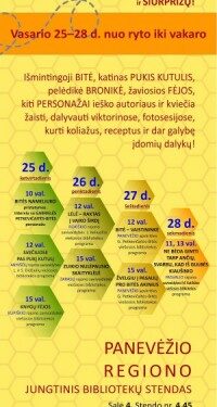 Panevėžio regiono bibliotekų jungtinio stendo atidarymas vyks vasario 25 d. (ketvirtadienį) 10 val. Susipažinsite su Bitės NameLiuku ir personažu Gabriele Petkevičaite-Bite.