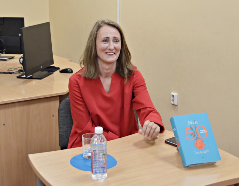 Rašytoja prisipažino, kad ši jos knyga buvo rašoma net dešimt metų. Ji buvo pradėta, kai autorei buvo 40, tačiau užbaigti ir išleisti pavyko tik esant 50-ies. Jaunatviškai atrodanti viešnia neslėpė, kad susidraugauti su 50-mečiu buvo tikrai nelengva. Pirmiausia, dėl to, kad pati nesijautė esanti tokio amžiaus. Renginio metu Virginija Rimkuvienė nevengė papasakoti netikėtų nutikimų, kurie yra susiję su kasmet augančiais skaičiais. Kai kurios situacijos išties kurioziškos, o kitos – glostančios savimeilę. Tai paskatino į pokalbį įsiterpti ir pasipasakoti susirinkusias moteris. Greitai susitikimas su rašytoja virto atviru, drąsiu, humoro jausmo nestokojančiu moterų pašnekesiu.